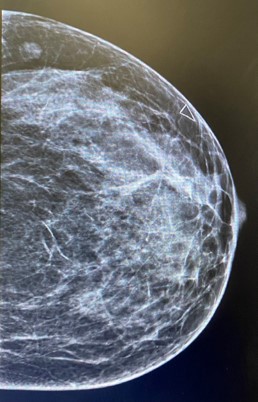 Patient denied any history of trauma, family history of breast cancer, previous breast surgery.
