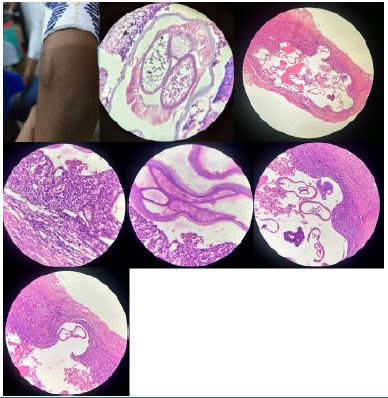 Rationale of conclusion and primary takeaway: The study confirms that histopathological examination is the gold standard for diagnosing cutaneous filarial granulomas, with adult worms or microfilariae in tissue sections being definitive. Failure of conventional tools also suggests to the possibility that these nodules could be a local reaction to filarial remnants rather than active infection. It emphasizes considering filariasis in the differential diagnosis of subcutaneous nodular masses, especially in endemic regions. The primary takeaway is the need for high suspicion and thorough histopathological evaluation, as clinical, lab and imaging findings alone may not suffice. Failure of conventional tools also suggests to the possibility that these nodules could be a local reaction to filarial remnants rather than active infection. FNAC and histopathological examination are crucial, with treatment involving antiparasitic medications and surgical excision. Further research is needed on the topic.